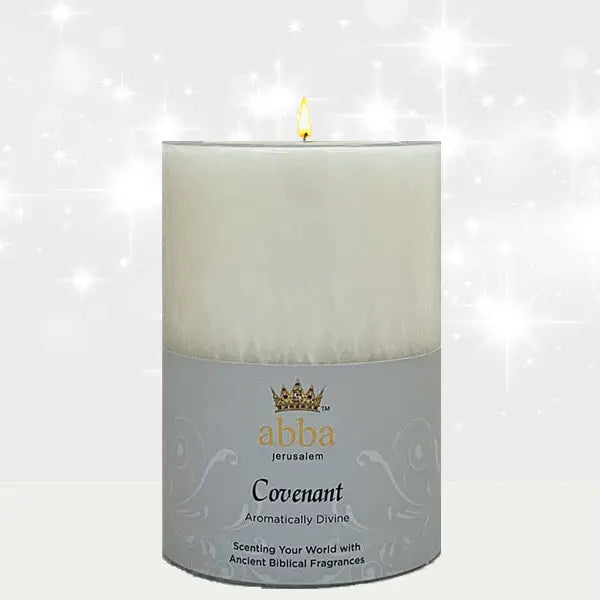 Our hand-poured, palm-wax pillars produce an exquisite design in each candle and burns cleaner than paraffin. The elegant label conveys the spiritual information about this custom-blended Abba Christian Product’s fragrance, complete with scripture verse. Approximate burn time: 50-60 hrs. Our Covenant fragrance speaks of the commitment and devotion of the parties entering a Covenant Relationship, both in the Marriage Covenant and in the Believer's Covenant with the All Mighty One. The Bible is filled with many scriptures that compare the marriage covenant on earth with the covenant between the Creator and His people. Abba Christian Product’s Covenant fragrance is a delicate blend of 4 fragrances that represent the three participants of the Biblical Marriage Covenant: Bridegroom - Frankincense & Myrrh; Bride - Spikenard; and the Holy Spirit - Hyssop.